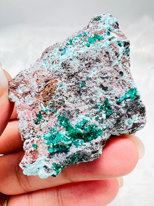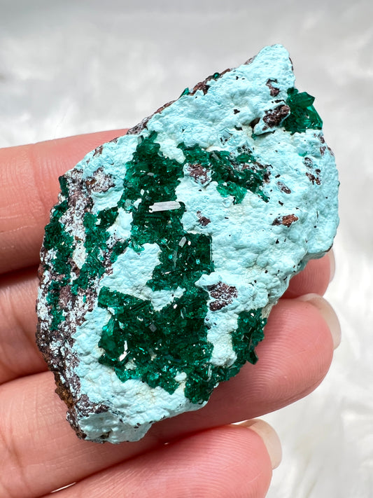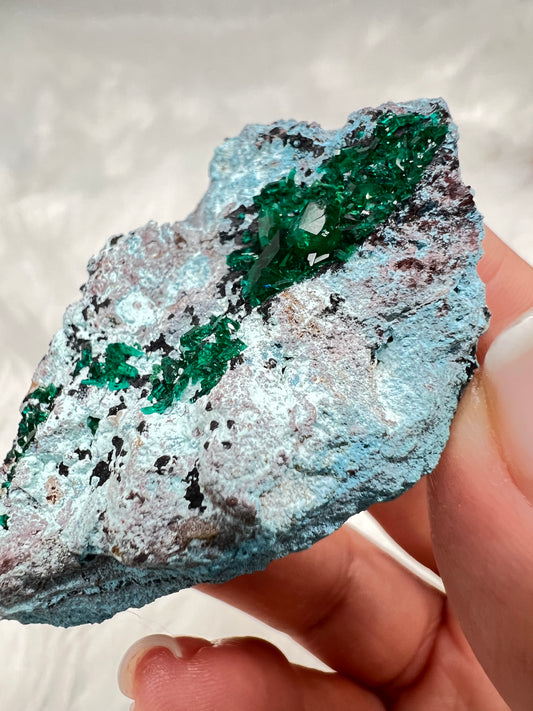 Dioptase on Plancheite