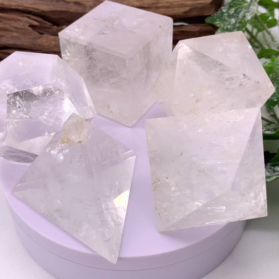 You will receive 5 pieces in this beautiful set. These shapes are known as the Dodecahedron, Isosachedron, Octahedron, Cube and Tetrahedron.